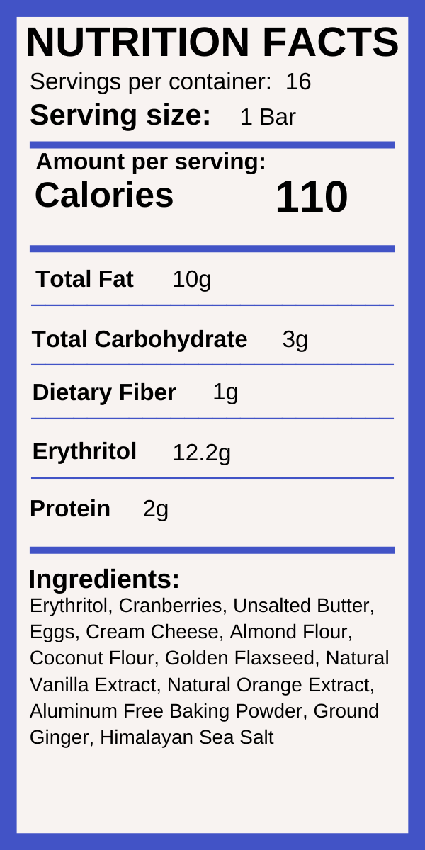 A decadent bar laden with cranberries with a sweet cream cheese topper and a hint of orange.