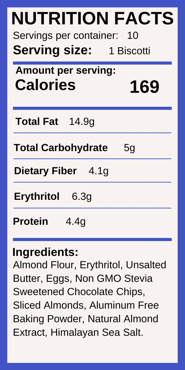 A delightful biscotti laced with a dark chocolate drizzle with a spray of crunchy almonds.